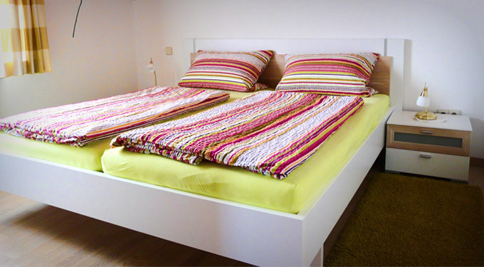 Im Obergeschoss befinden sich die beiden Schlafzimmer mit jeweils 2 Betten. Eine Erweiterung auf 5 Betten sowie ein Kinderbett ist ohne weiteres möglich - dadurch können Sie mit der ganzen Familie