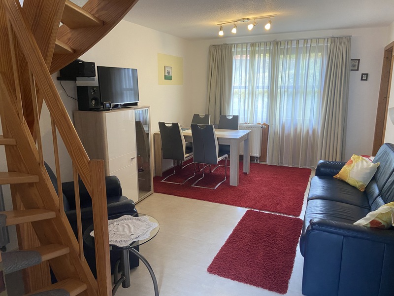 Im Erdgeschoss befinden sich das Wohnzimmer, eine komplett ausgestattete Küche und das Badezimmer. Unsere Küche ist mit einem Geschirrspüler sowie Telefon ausgestattet.